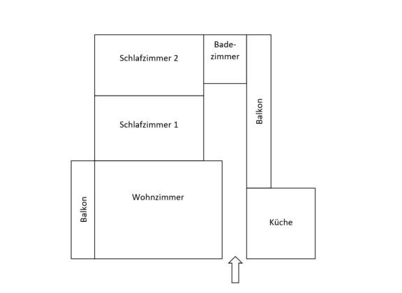 2 getrennte Schlafzimmer, einen Flur mit Garderobe, eine voll ausgestattete Küche und eine Dusche mit WC.